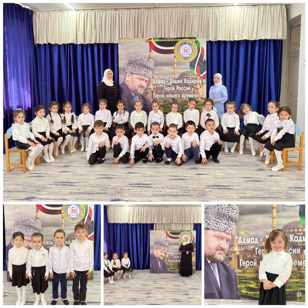 05 мая в ДОУ проведено мероприятие, посвященное светлой памяти первого президента Чеченской Республики, героя России Ахмат - Хаджи Кадырова. Во всех возрастных группах проведены беседы «Всегда в памяти», «Он ушел непобежденным». Воспитатели рассказали о мужестве и героизме первого президента Чечни. Светлая память первому президенту Чеченской республики Ахмату-Хаджи Кадырову. Его имя навсегда вписано в героическую историю России, оно будет жить в сердцах благодарных потомков до тех пор, пока жива Чеченская республика и Россия.